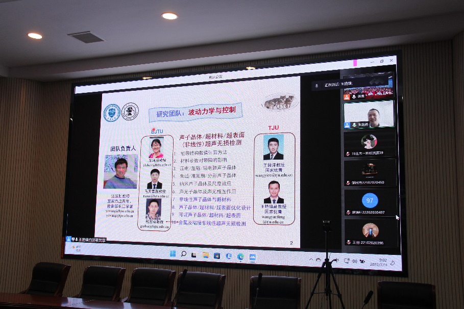 11日上午,天津大学王艳锋副教授作了题为“声子晶体共振带隙的设计、预测与应用”的线上专题讲座。王老师首先介绍了波的理论及其在超构材料中的应用实例,引出科学与工程问题,再从波动方程的建模与求解手段出发,重点介绍了声子晶体共振带隙在不同维度、不同几何形状方面的设计、预测及工程应用。