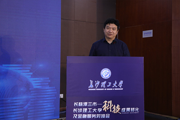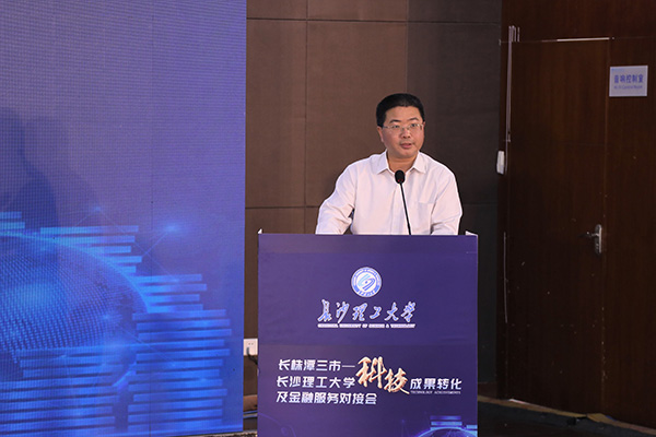 曹一家在致辞中表示,学校一直高度重视科技成果转化,近五年,主持承担国家重点基础研究发展计划(“973计划”)项目等国家级项目383项,获国家级和省部级科技奖励89项,职务发明专利994项,主动对接长沙市22条产业链,建立产学研合作平台30个,学校近一半的科技成果是在长株潭转化。“十四五”时期,学校将贯彻“三高四新”战略,围绕湖南产业布局,成立交通运输工程、电气工程、水利工程、材料科学等20 个研究院(所),组建“三高四新”战略研究院、“长株潭都市圈建设”研究院、洞庭湖研究院等一批新型智库(研究院),聚焦智能交通、智能建造、新能源与智慧电网、先进储能材料等十大重点任务着力攻关,为践行“三高四新”战略作出积极贡献,努力成为湖南科技创新重要源头。