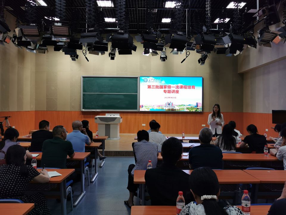 会议由教务处副处长邓丰主持。会上,邓处长对各学院参与申报一流课程的积极性给与了肯定,并隆重介绍了两位教授在一流课程建设上获得的荣誉。她相信通过这次的专题讲座,将为我校第三批国家级一流课程的申报奠定扎实的基础。