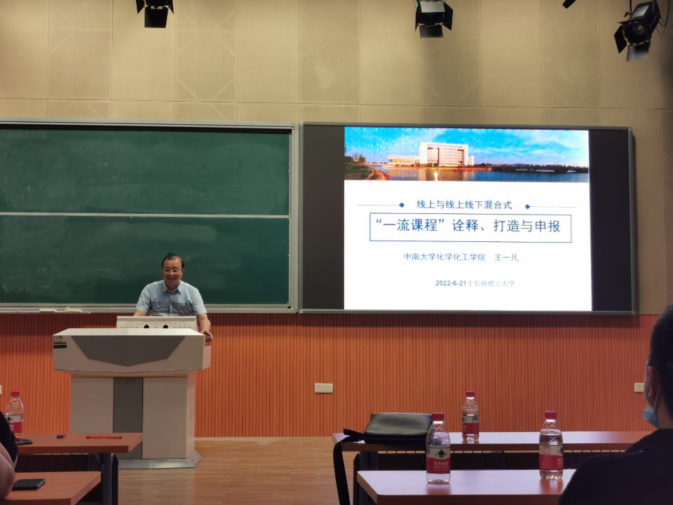 为进一步做好我校第三批国家级一流本科课程培育工作,6月21日14:30分在图书馆三楼演播厅,教务处组织举办了第三批国家级一流课程培育专题讲座。会议邀请了湖南大学赵欢教授、中南大学王一凡教授作专题培训,教务处邓丰副处长出席,我校获评的40门培育课程的课程负责人及团队成员参与了讲座。