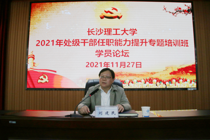 学校举行2021年处级干部任职能力专题培训班学员论坛11月27日下午,我校2021年处级干部任职能力专题培训班学员论坛在一办公楼九会议室举行,校党委副书记刘建民、党委组织部常务副部长、党